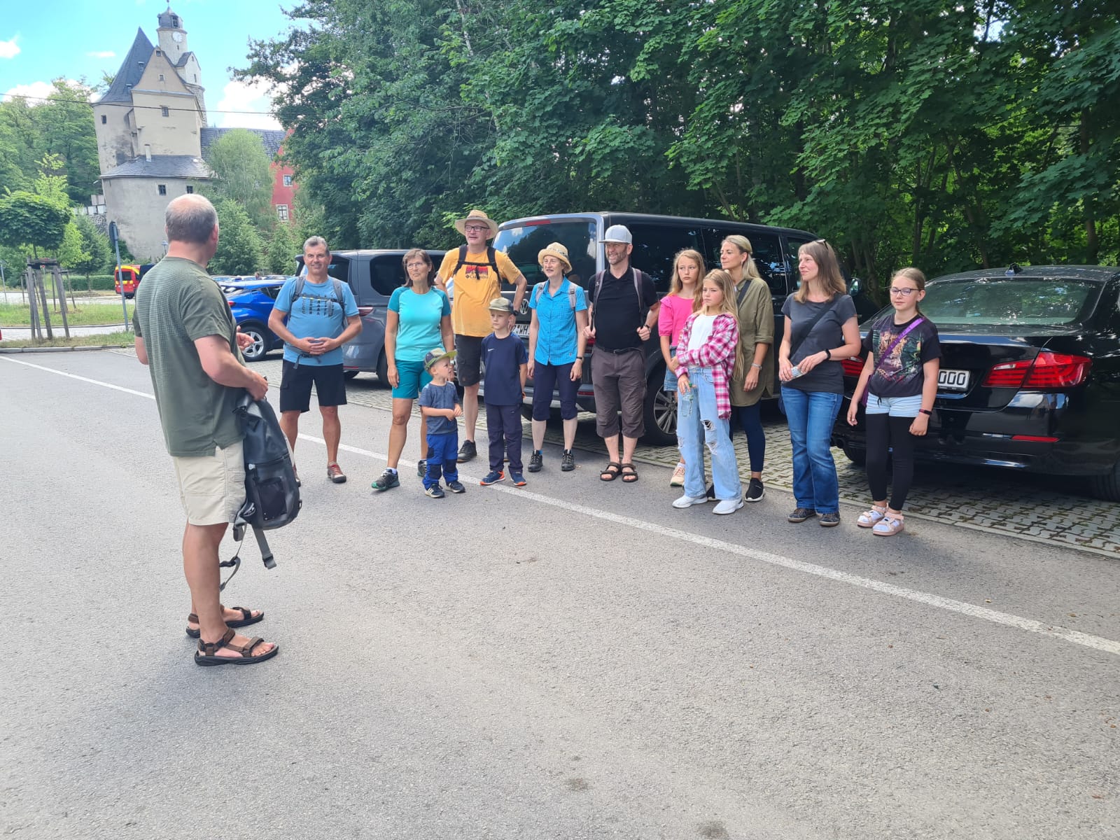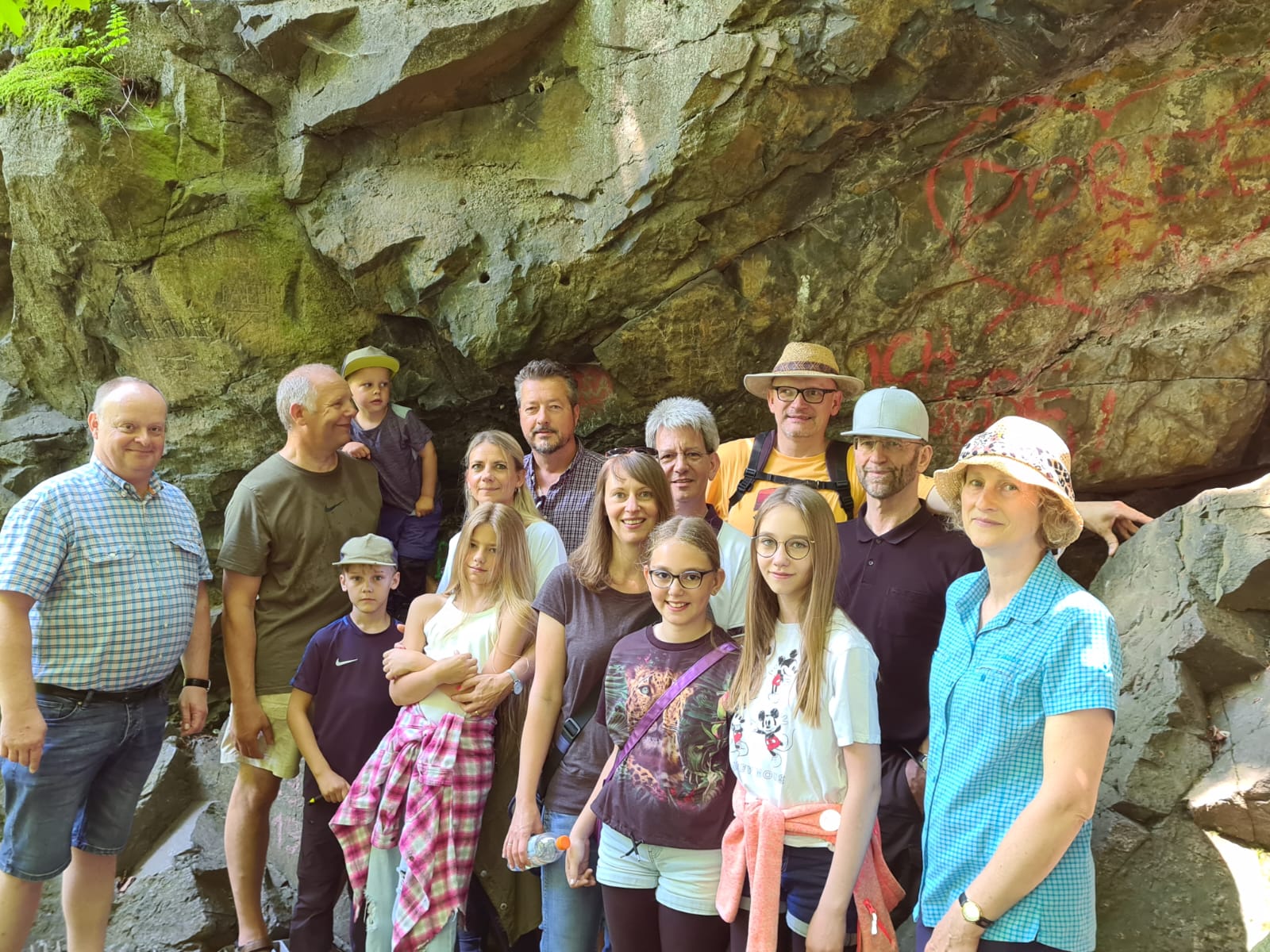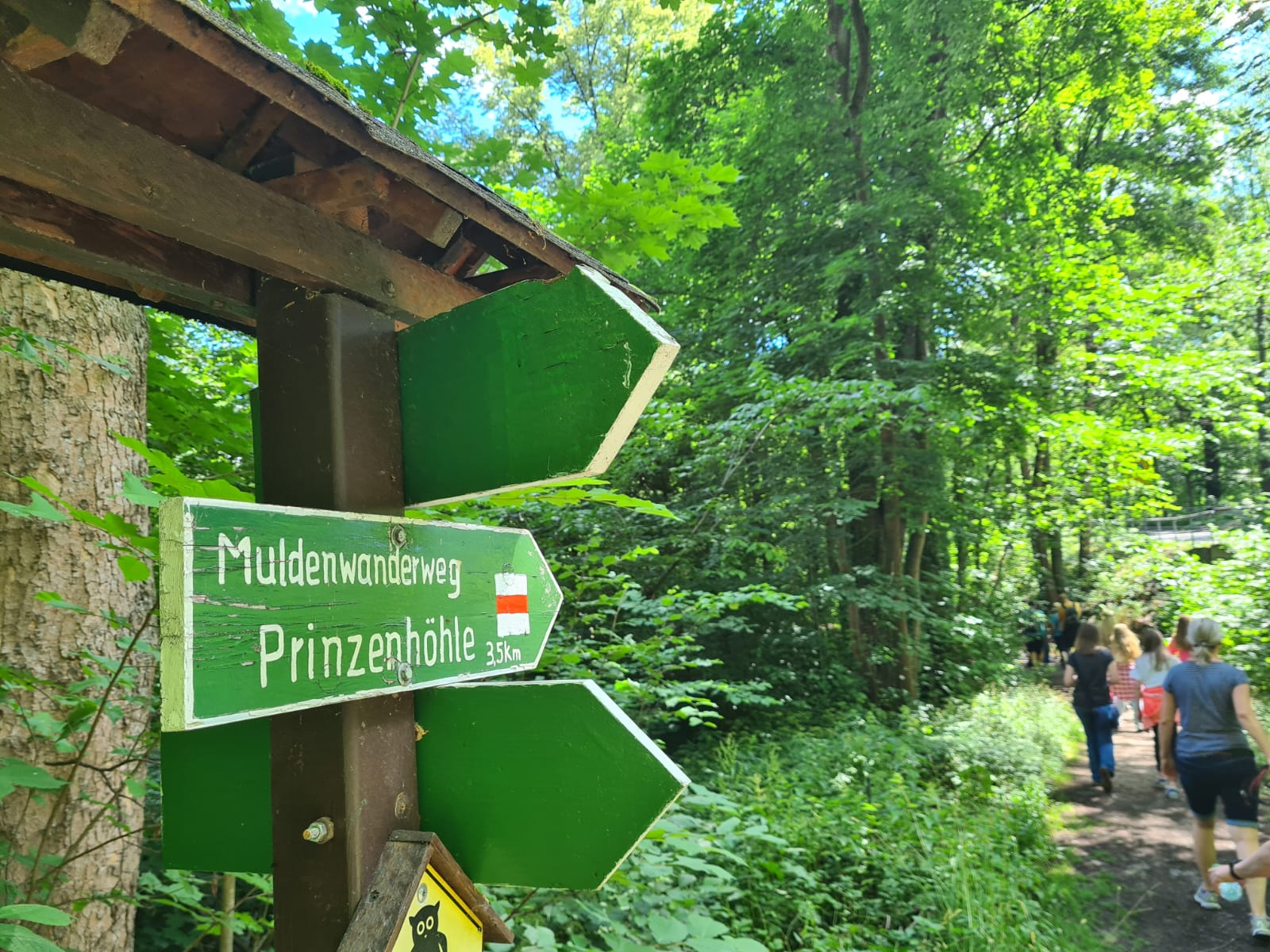 Bei schönstem Wetter ging es los... Wir wanderten entlang der Mulde zur Prinzenhöhle bei Hartenstein. Dort schauten Groß und Klein, ob der Prinz noch da war. Aber wie wir alle wissen, war der Prinz schon weg. Denn bereits im Juli 1455 sollen die Ritter Wilhelm von Mosen und Wilhelm von Schönfels, Komplizen des Kunz von Kaufungen und zwei ihrer Knechte den Prinzen Ernst von Sachsen während des Altenburger Prinzenraubes dort versteckt haben.