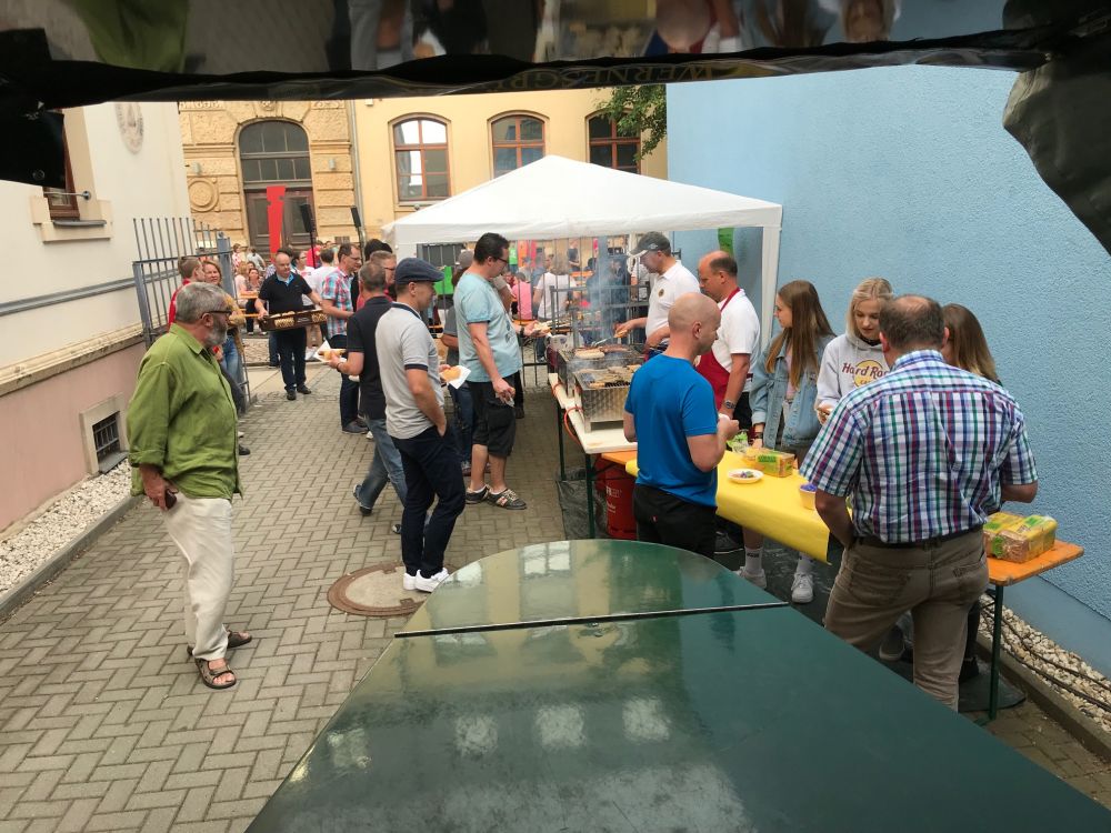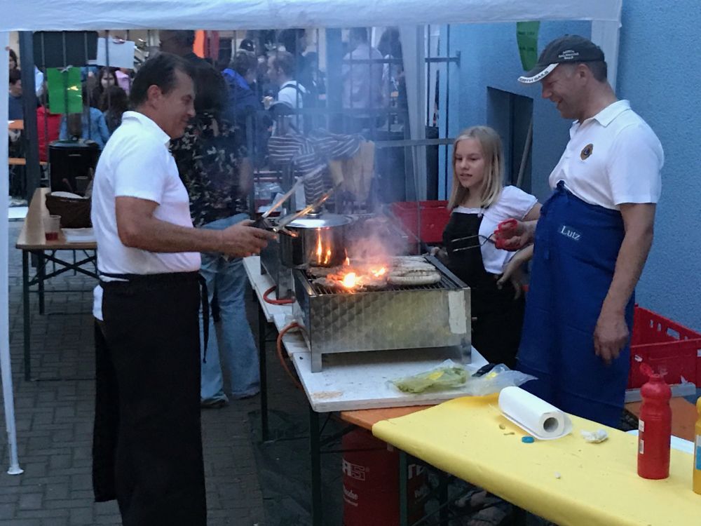 Zum Schulfest des Peter-Breuer-Gymnasiums haben wir die gastronomische Versorgung übernommen. Mit Rostern, Steaks und Brötchen von der Stangengrüner Mühlenbäckerei haben wir den Schülern, Eltern und Gästen den Hunger genommen und sie außerdem noch aus dem Getränkewagen versorgt. So kam ein stattlicher 4-stellige Betrag zusammen, mit dem wir gemeinsam mit dem Gymnasium mobile Schulen in Afrika „Schule im Koffer“ unterstützen.