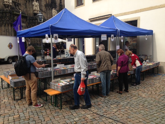 Sonntag Nachmittag hat sich Lionsfreund Matthias Pölmann noch frei machen können und ist zu uns gestoßen. Große Unterstützung erhielten wir auch von Barbara Elfmann und dem Bruder von Jonathan Hoffman welche am Sonntag dabei waren. Vielleicht auch deshalb hat das Sonntagsteam das schon sehr gute Sonnabendteam noch übertroffen. Sonnabend wurden schon gut 300 € erzielt was also 300 verkauften Büchern oder CD´s entspricht aber Sonntag wurde das noch getoppt und es kamen über 450 € an Spenden zusammen.